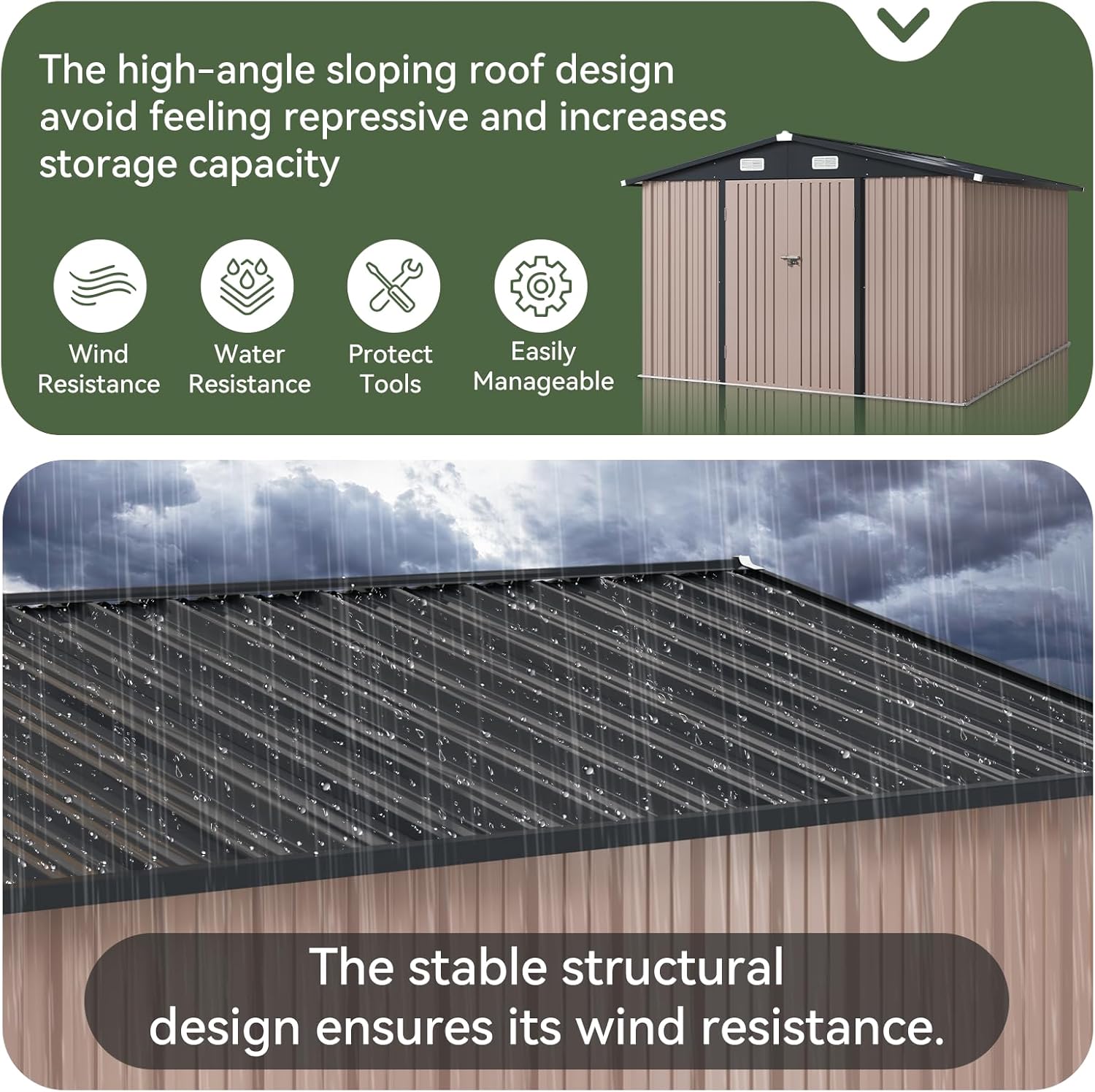- Built Tough for Lasting Durability & Stability: Constructed from robust, thick-gauge galvanized steel with reinforced panels and a strong frame, ensuring exceptional resistance to dents, rust, and harsh weather elements (rain, wind, sun). Engineered for long-term structural stability and reliable, worry-free performance season after season, requiring minimal maintenance.