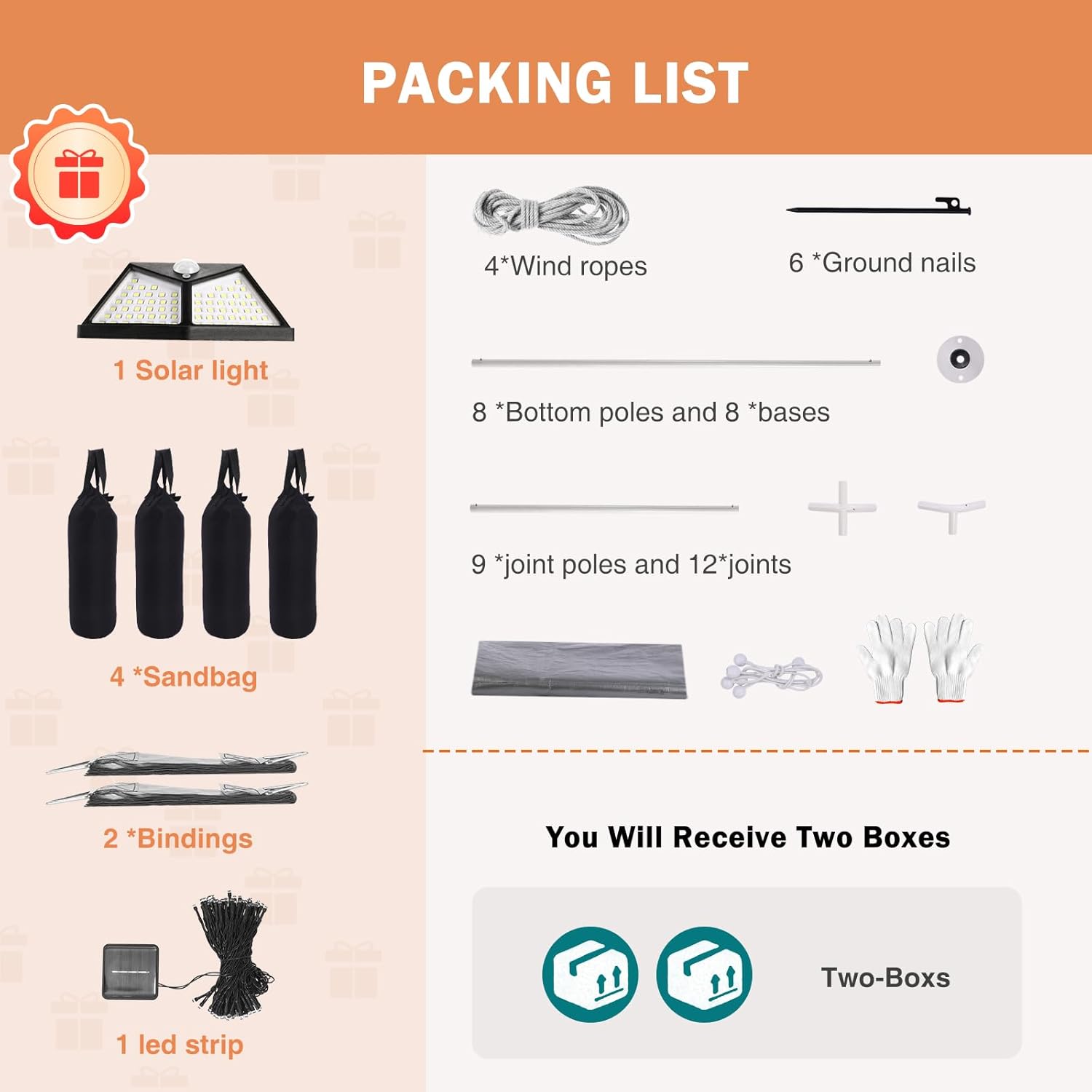 - 【Great Value】: Our 2 car carport 20x20 heavy duty offers high-quality materials and valuable extras. Your purchase includes solar lights, a light belt, bindings, and windproof sandbags, providing excellent value for your money.