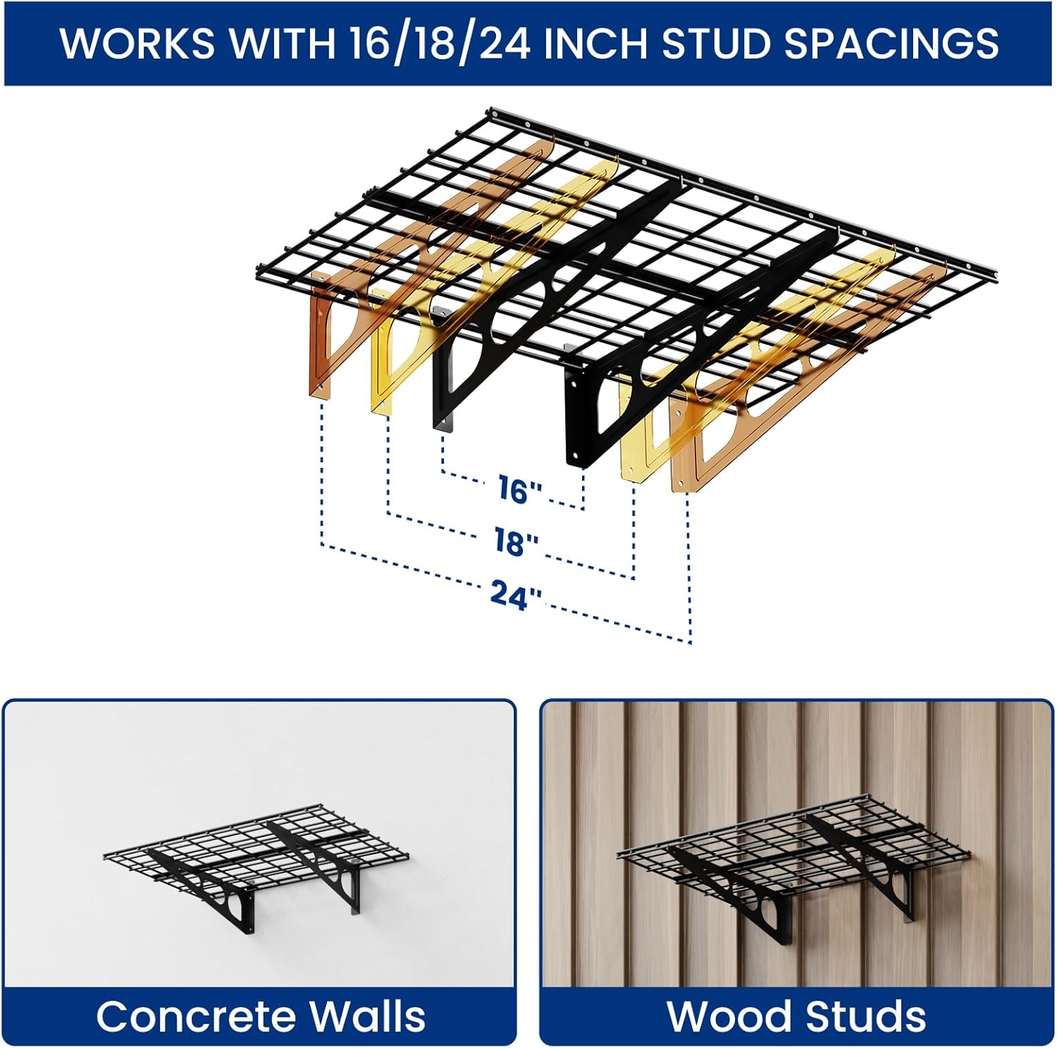 FLEXIMOUNTS 2-Pack 2x6ft Garage Shelving with Hooks, 24-inch-by-72-inch Wall Shelf Garage Storage Racks Floating Shelves, Black