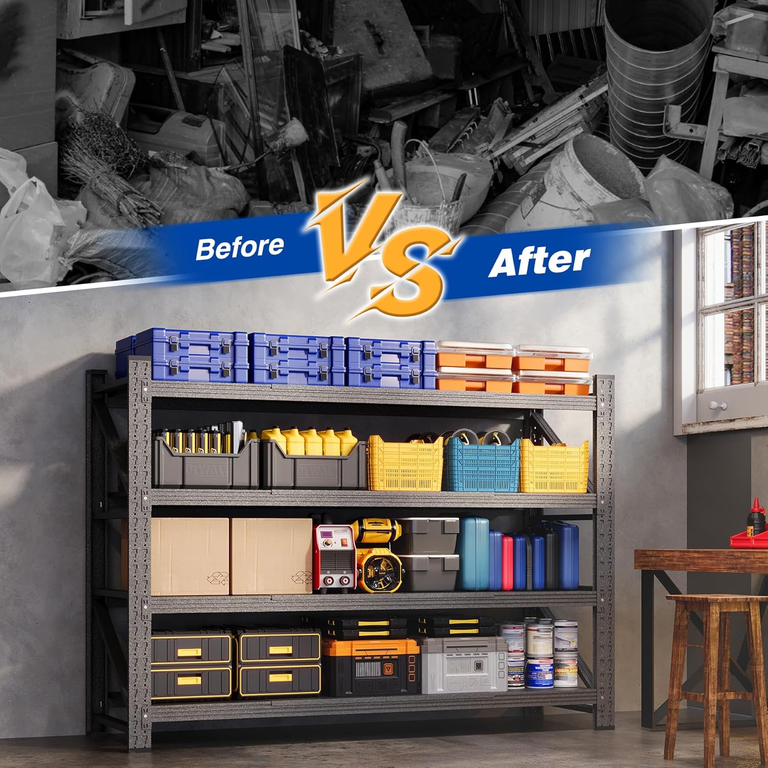 - Extra large product size: The heavy-duty shelving are 60"W x 24"D x 70"H, and have been widened and upgraded horizontally. They have an extra-large width of 60 inches, which can store more items and are suitable for more usage scenarios, such as garages, factories and warehouses, etc.