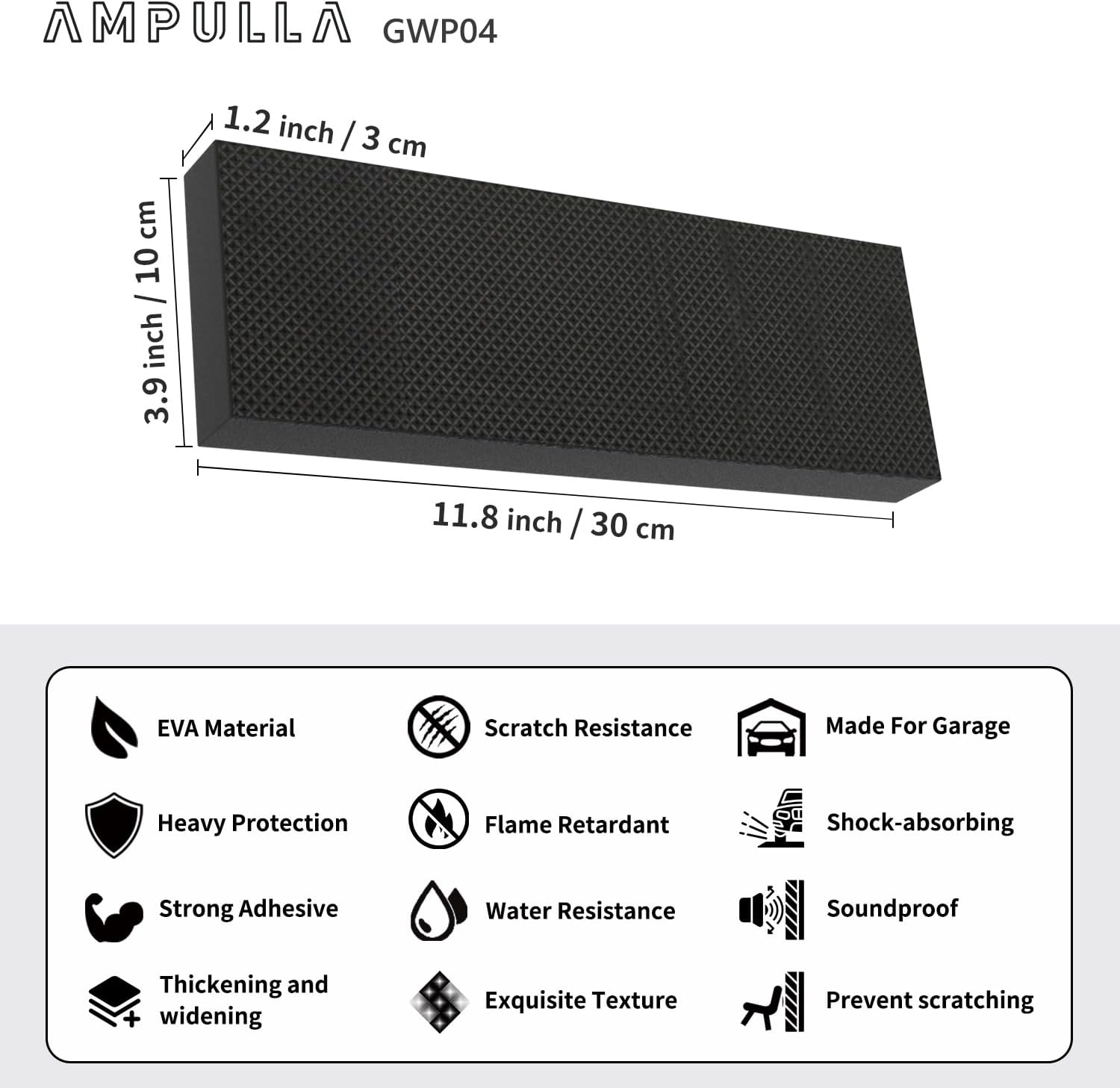 - Great Protection & Impact Absorption β Each strip size is 11.8" x 3.9" x 1.2". The 1.2" thick foam can perfectly absorb any impact up to 330lb or 150kg, preventing damage from any potential impacts when parking in the garage.