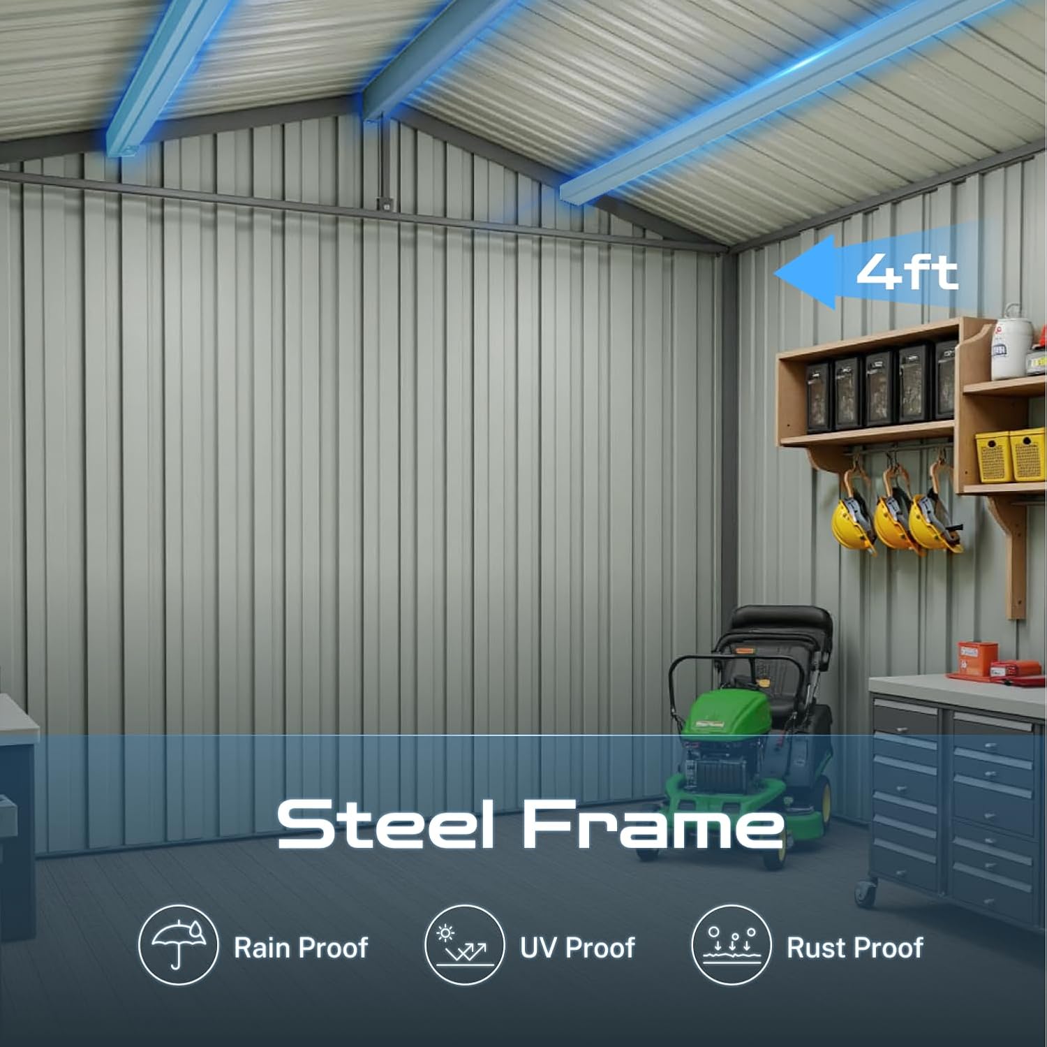 - â ăSloped RoofăThe shedâs sloped roof is engineered for efficient rainwater drainage, minimizing the risk of pooling and leaks. This thoughtful design keeps your tools, equipment, and other items dry and safe in diverse weather conditions. With its low-maintenance structure, the roof enhances the shedâs durability, making it a reliable choice for all-season outdoor storage