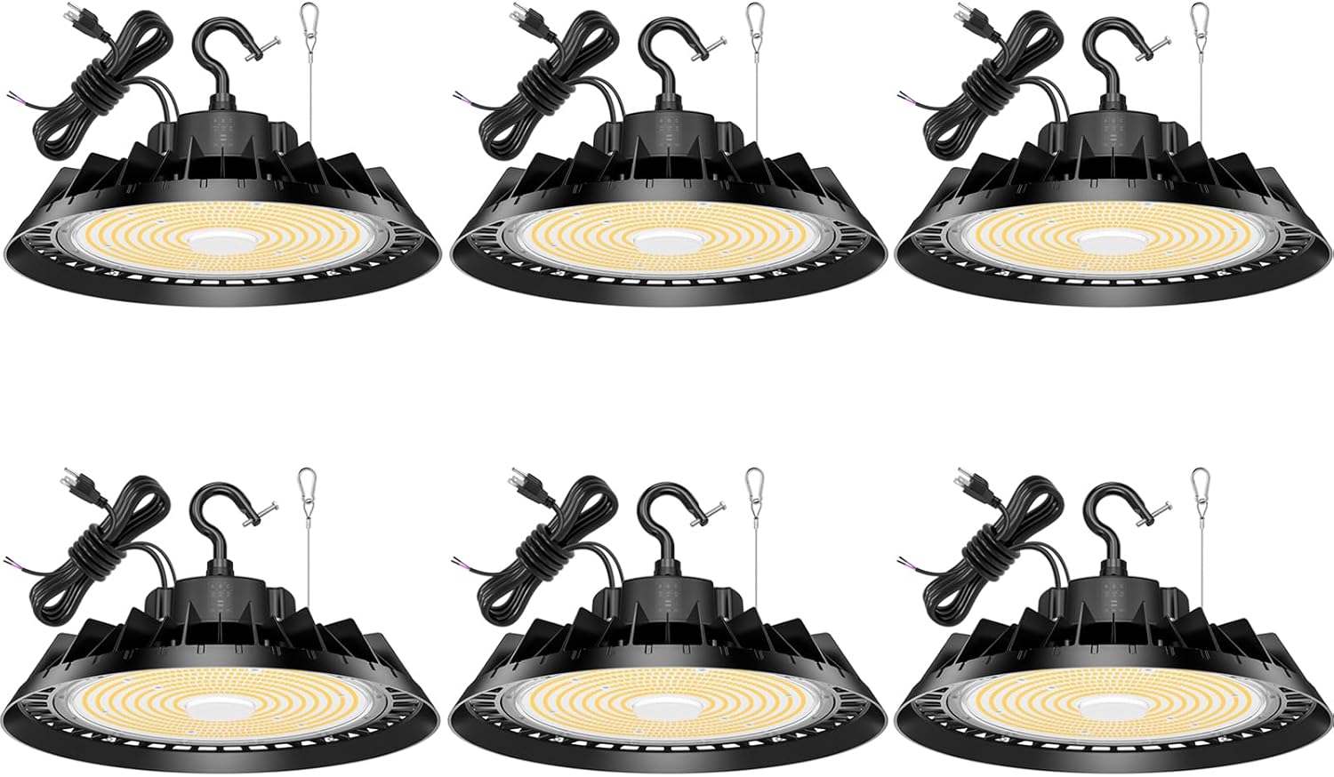 6Pack LED High Bay Lights, Super Bright 240W UFO High Bay LED Shop Lights, 36000LM 5000K, 0-10V Dimmable, 5' Cable Plug, IP65 Waterproof, ETL Listed Plug & Play Lighting for Gym Factory Warehouse