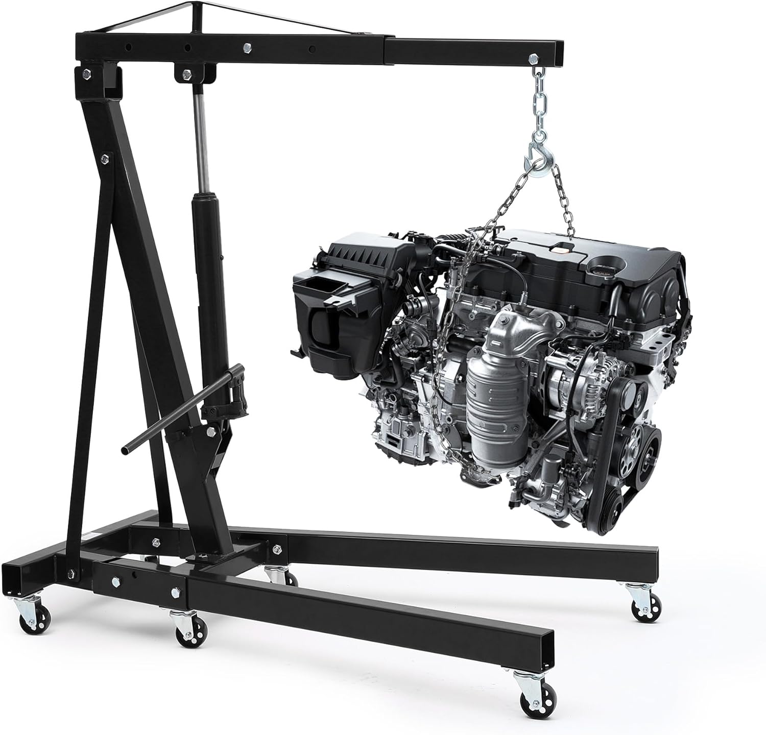 - Wide Applications for Workshop & Garage: This folding cherry picker engine hoist is built for a range of tasks including lifting engines, axles, transmissions, and motor components, serving as a reliable and easy-to-operate motor lift and hydraulic engine hoist for both professionals and DIY enthusiasts