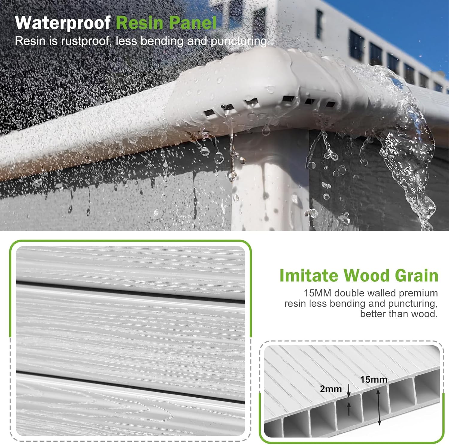 - 🏠PREMIUM RESIN MATERIALS:Our durable storage shed is crafted with 14MM premium polypropylene resin plastic, which is thicker than others in the market. Resin shed is waterproof, rustproof and UV-resistant, less bending and puncturing, worry-free for use in all weather conditions. It is a great shed house for your backyard, patio and garden.