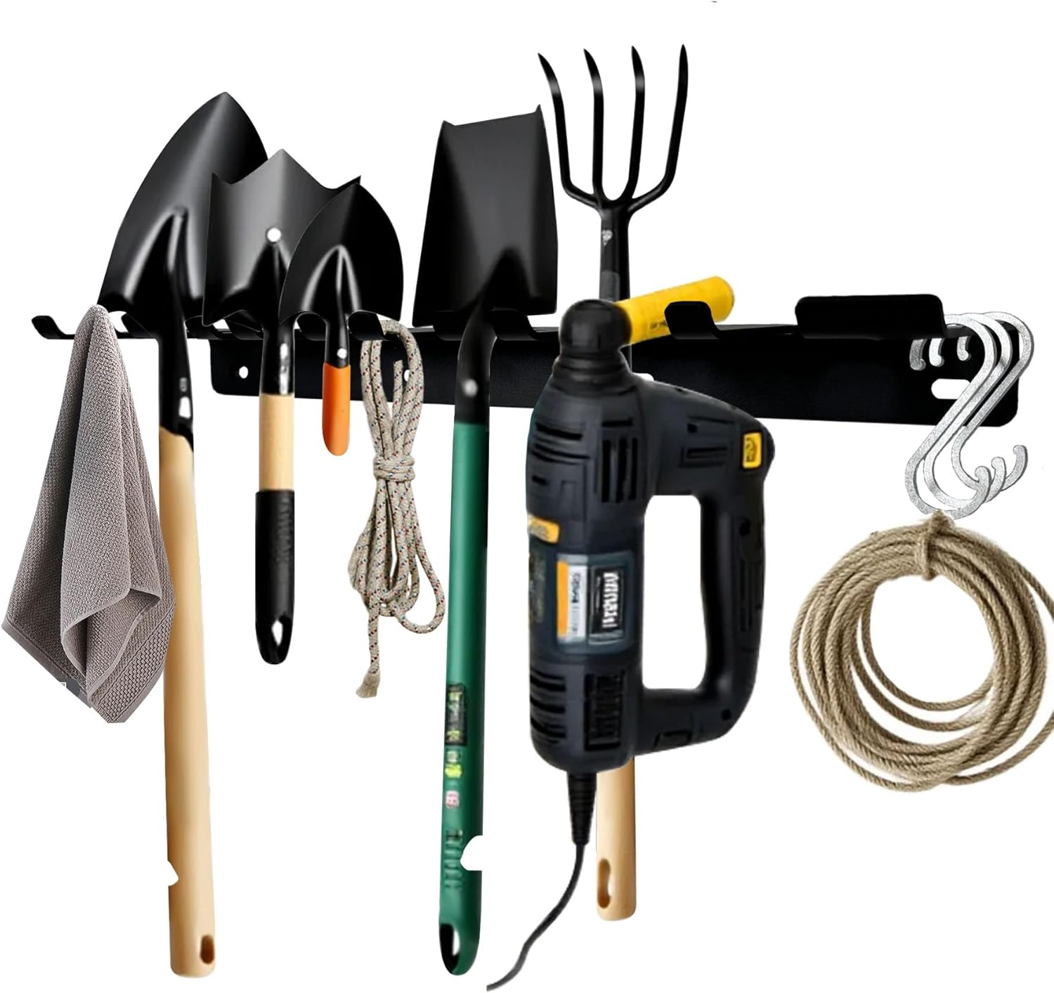 22‘’/25‘’/31‘’Black Wall-Mounted Tool Storage Rack, Suitable for Outdoor Garden, Space-Saving, Strong Storage Capacity.Barbell Wall Rack.Weight Capacity: 300 LB.-350LB