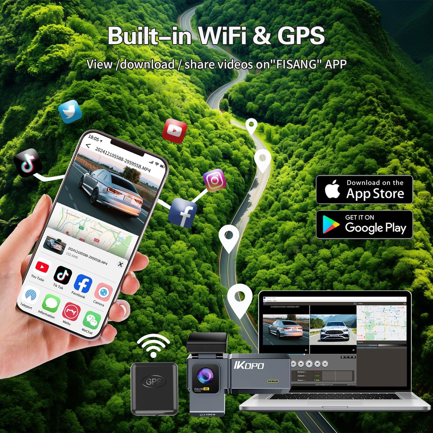 - ăTriple-Lens 4K + 1080P HD Synchronized RecordingăIKOPO Triple-Channel Dash Cam simultaneously captures 4K Ultra HD (3840x2160P) front footage, 1080P rearview, and 1080P cabin monitoring. Its 170° front + 160° rear ultra-wide angles minimize blind spots, with a 21-foot extension cable compatible with sedans, SUVs, and trucks. Advanced HDR/WDR technology ensures license plates and road signs remain clearly visible day and night, providing irrefutable evidence for accident liability determination.
