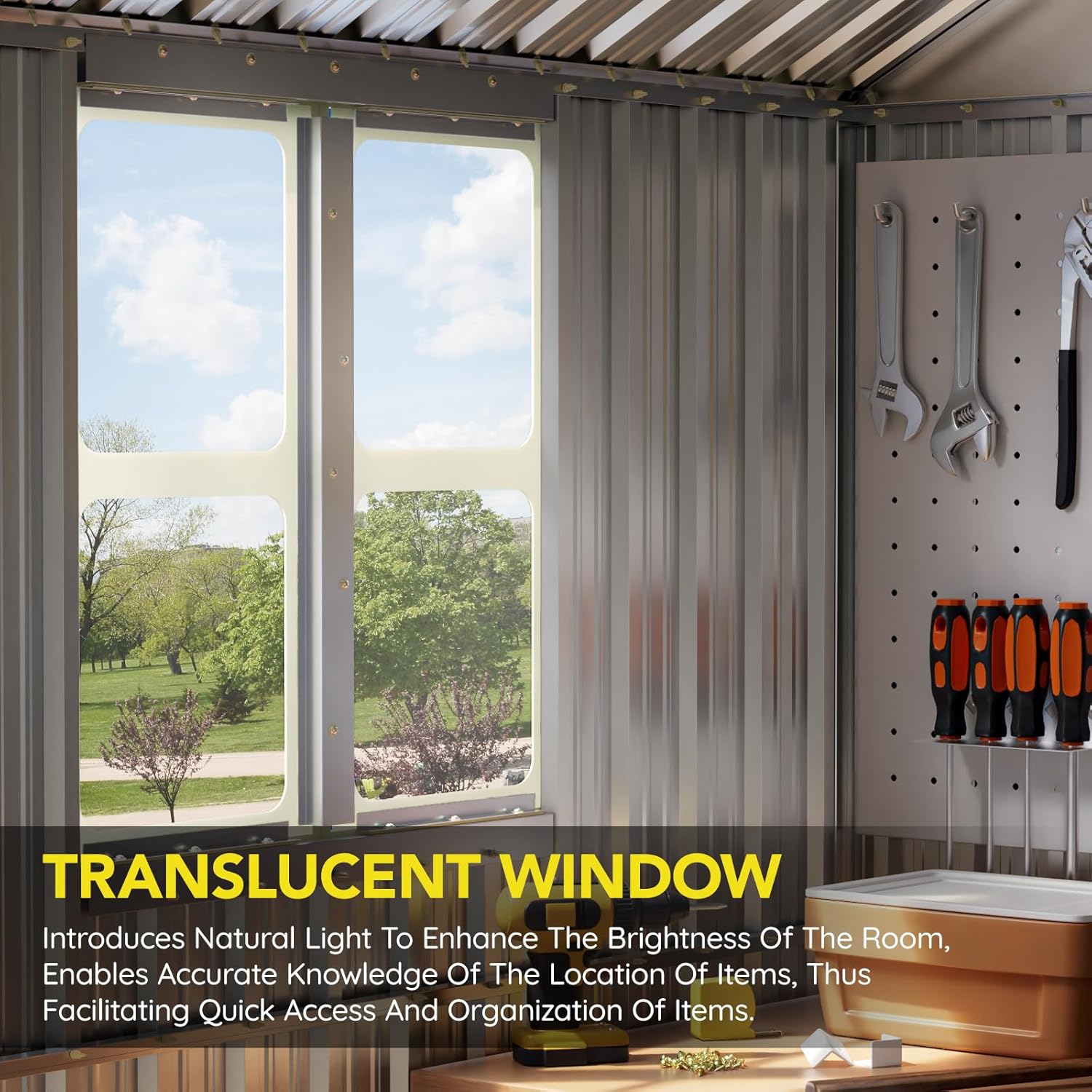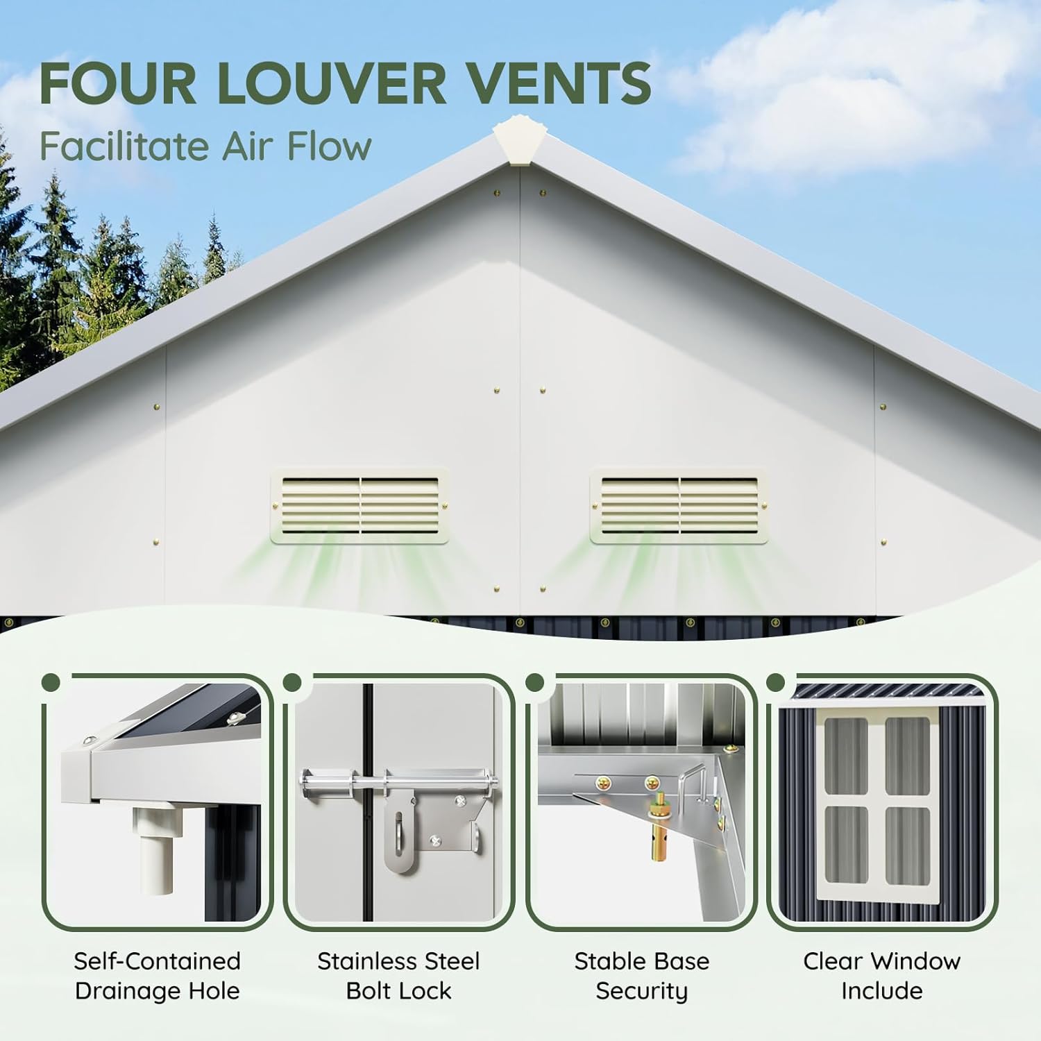 - Durable All-Steel Construction β Made with heavy-duty galvanized steel panels that resist rust, corrosion, and harsh weather conditions for long-lasting performance.