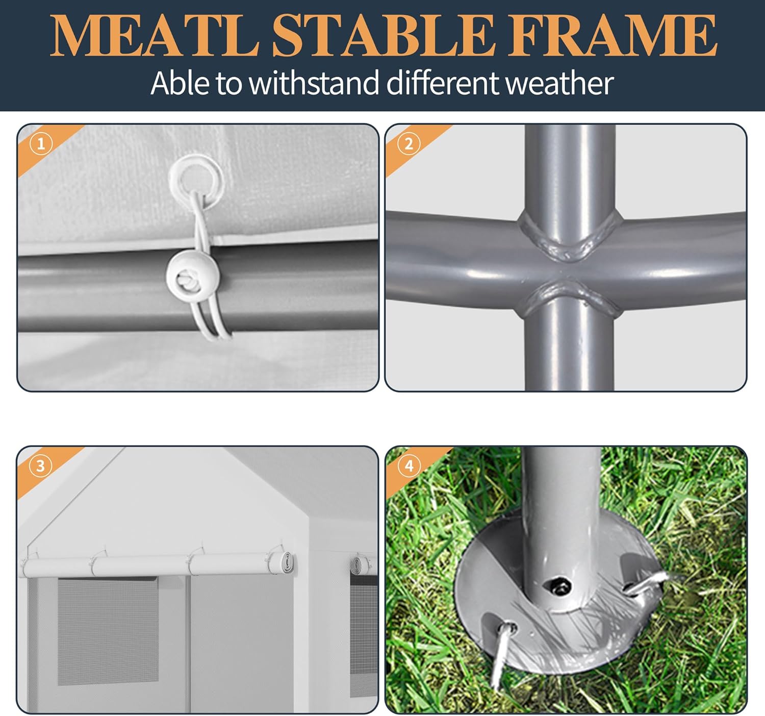 - 【Heavy Stable Metal Frame】: Our heavy duty car garage tent uses 8 strong φ38mm galvanized steel pipes, unique double wall construction, wall thickness of 0.8mm, durable. The surface is coated with anti-rust powder coating to prevent cracking, peeling, rust and corrosion.