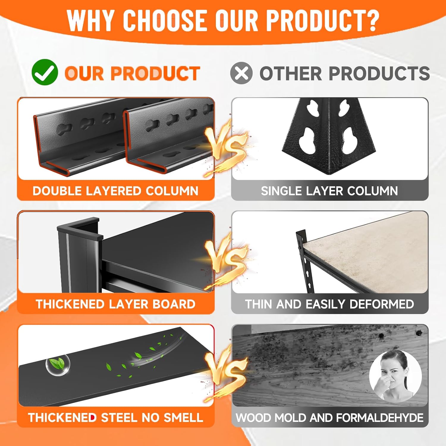 - ăQuality Assurance and Professional Supportă Our professional team provides 24/7 online service. Every step from production to delivery undergoes rigorous inspections and passes three distinct quality checks. The reinforced packaging with corner protectors safeguards your metal garage storage shelving unit during transit. Enjoy a one-year warranty with free returns within 30 days; if you encounter any issues, contact us immediately after delivery. We highly value your user experience and are committed to providing optimal service for your garage storage and organization solutions